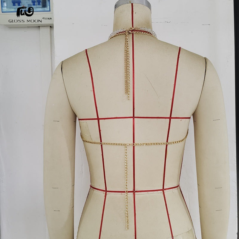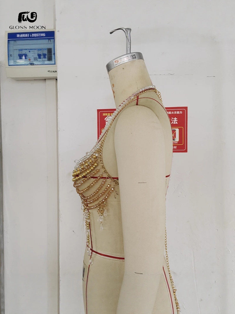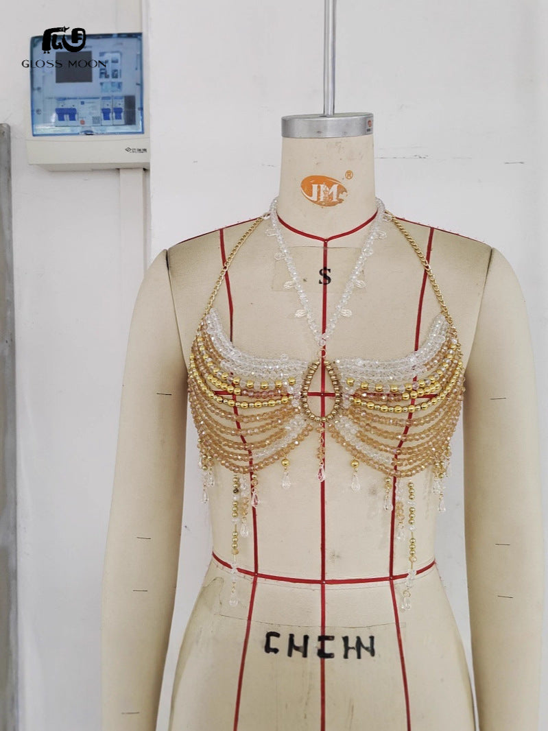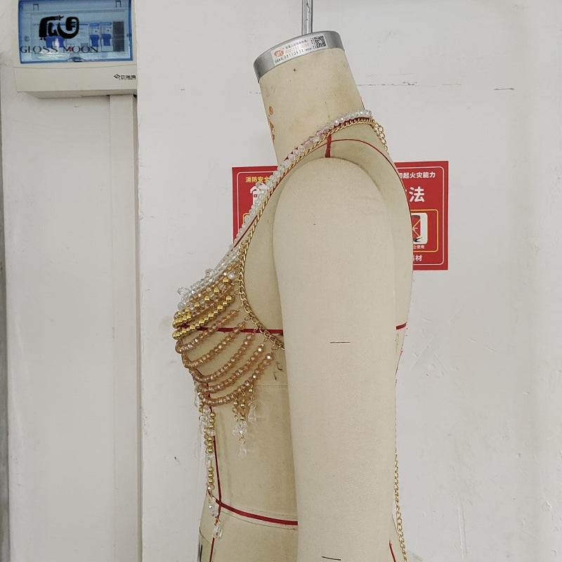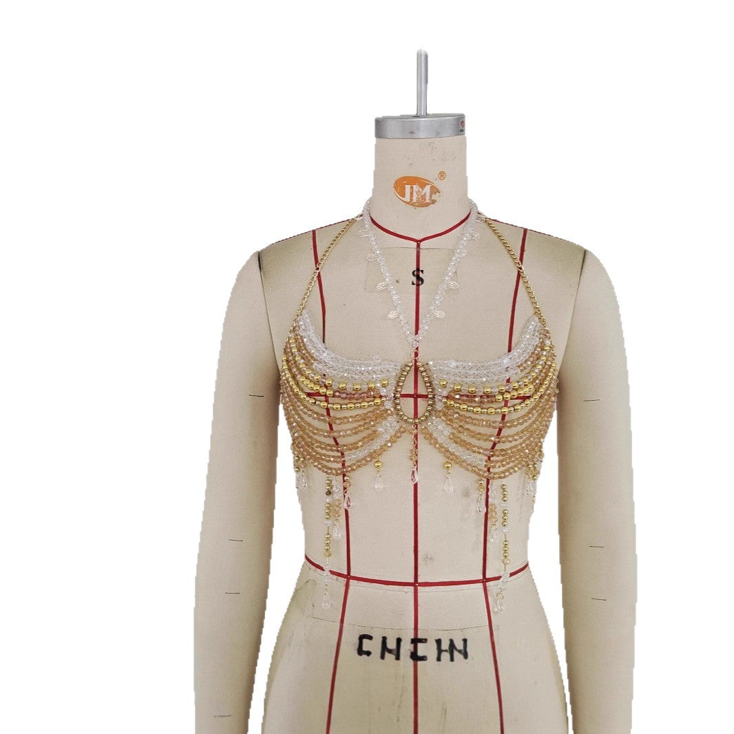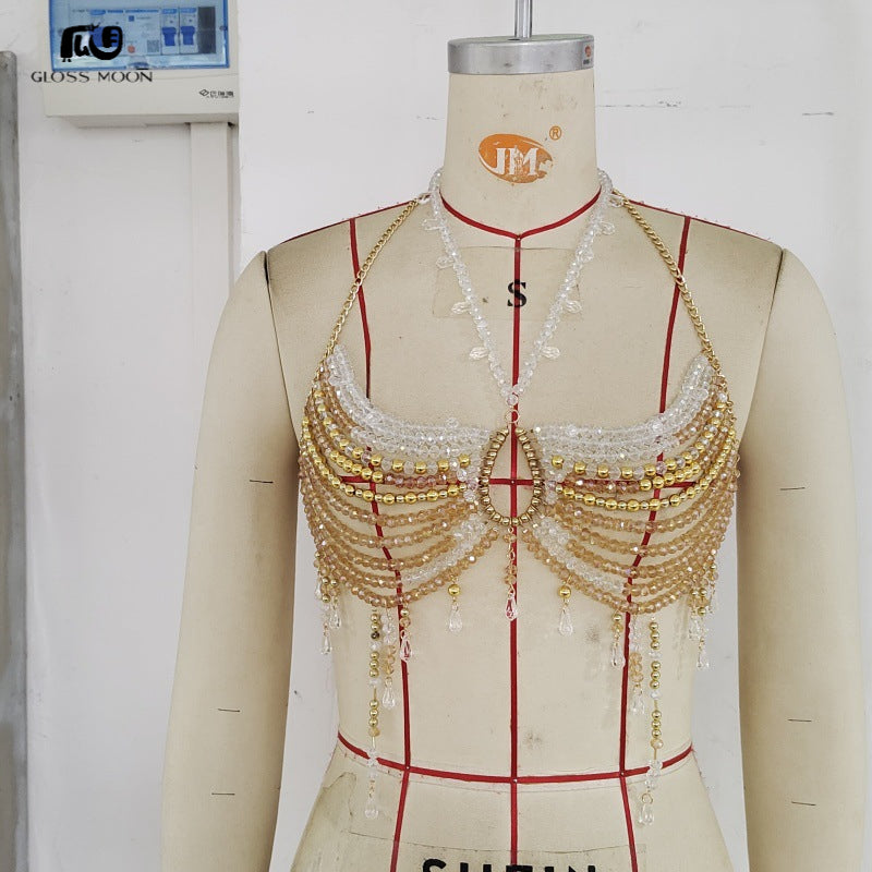 Glossmoon New Colorful Beads Gemstone Heavy Craft Sexy Hot Girl Tank Top Vest Chest Chain Bikini Nightclub Beach Bikini Jewelry