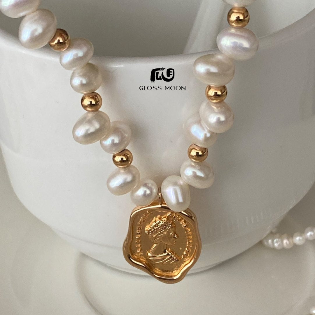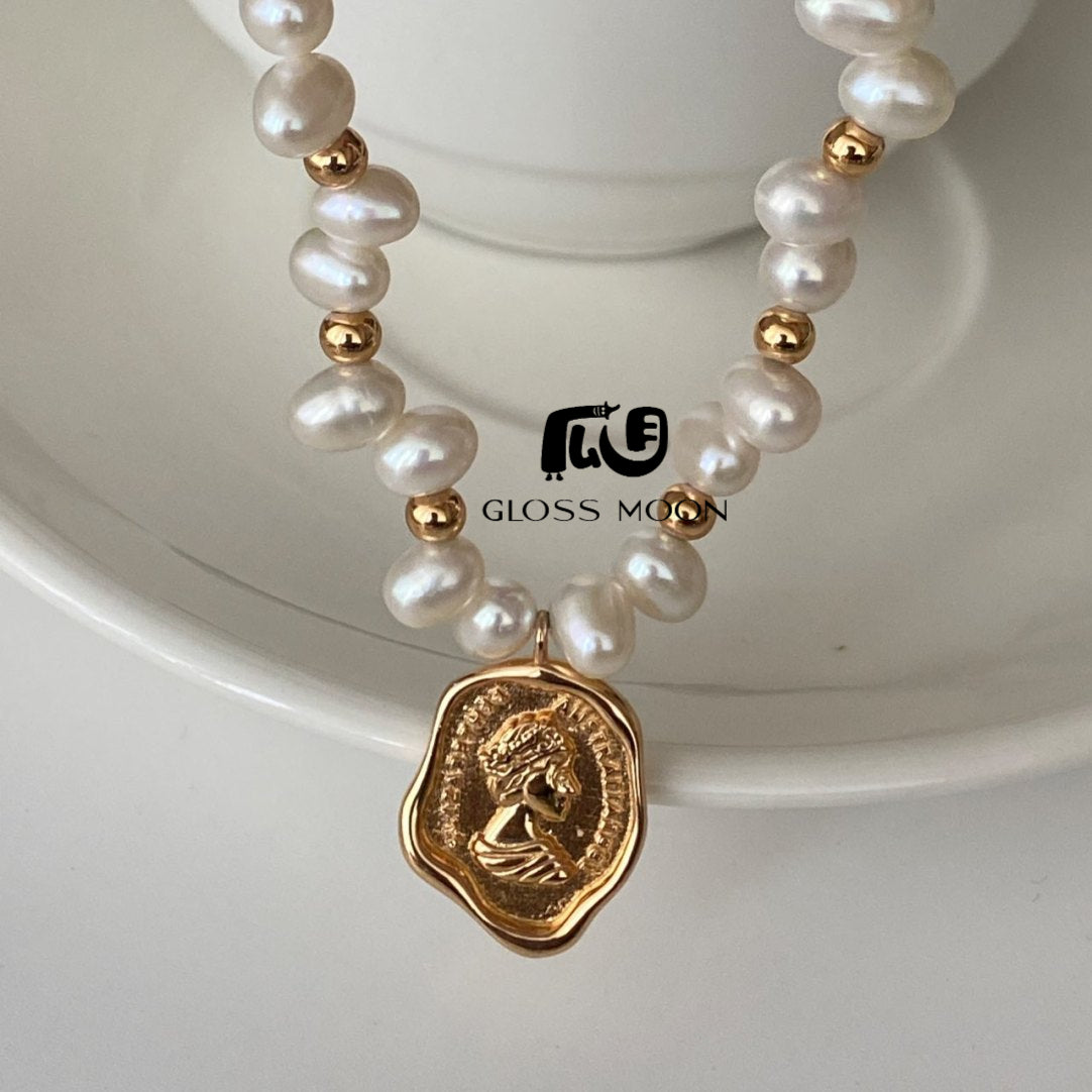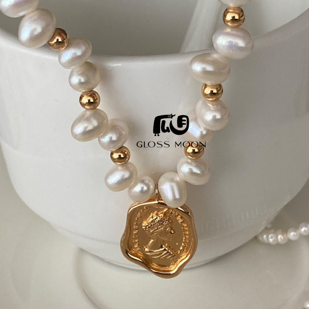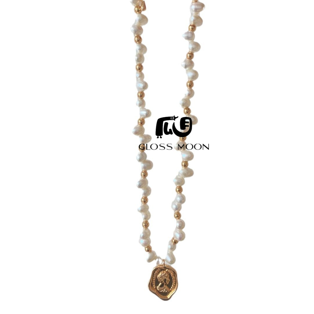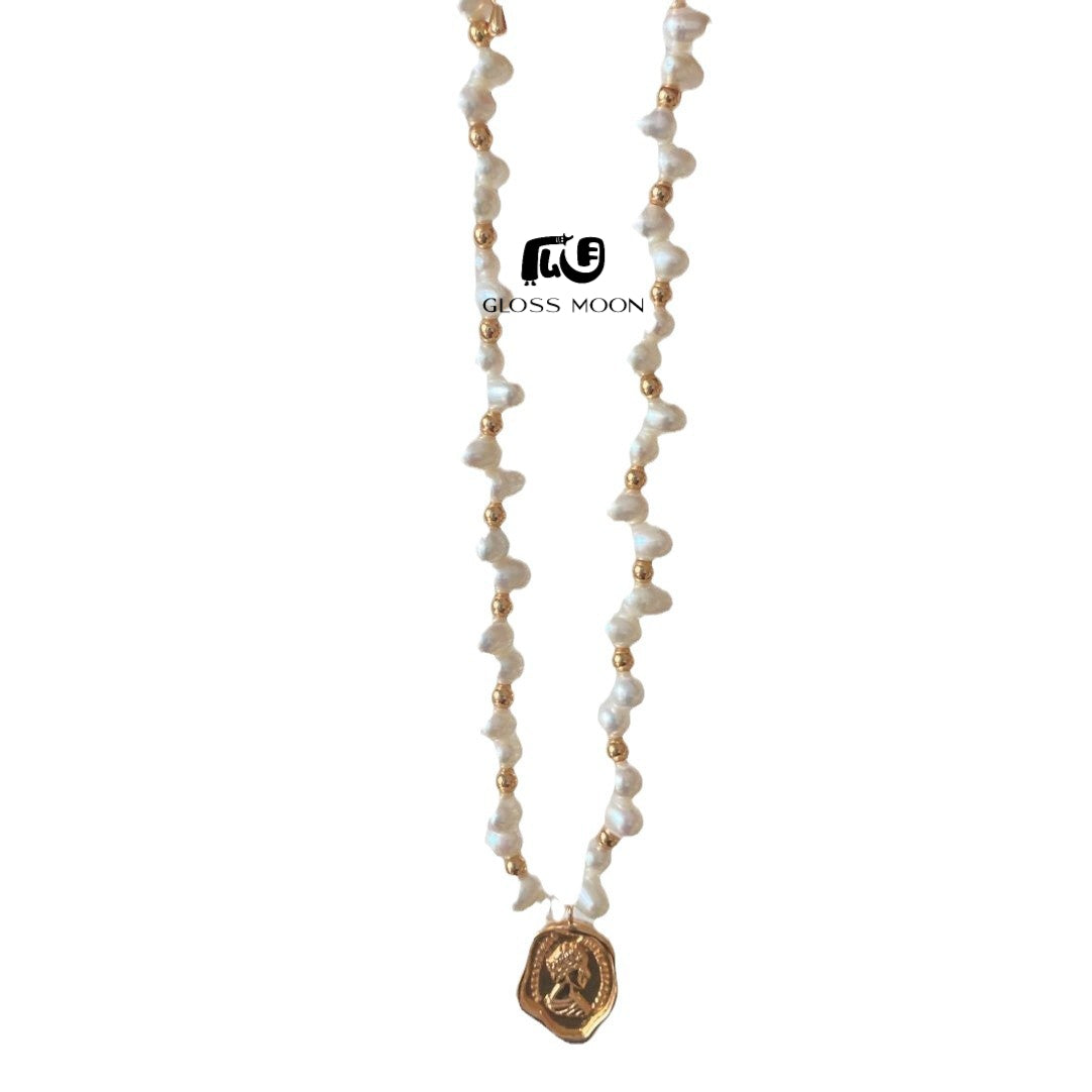 Gloss Moon Fresh Fashion Pearl Stone-Shaped Pearl Chain Queen Tag Necklace High-End Design Feminine Temperament