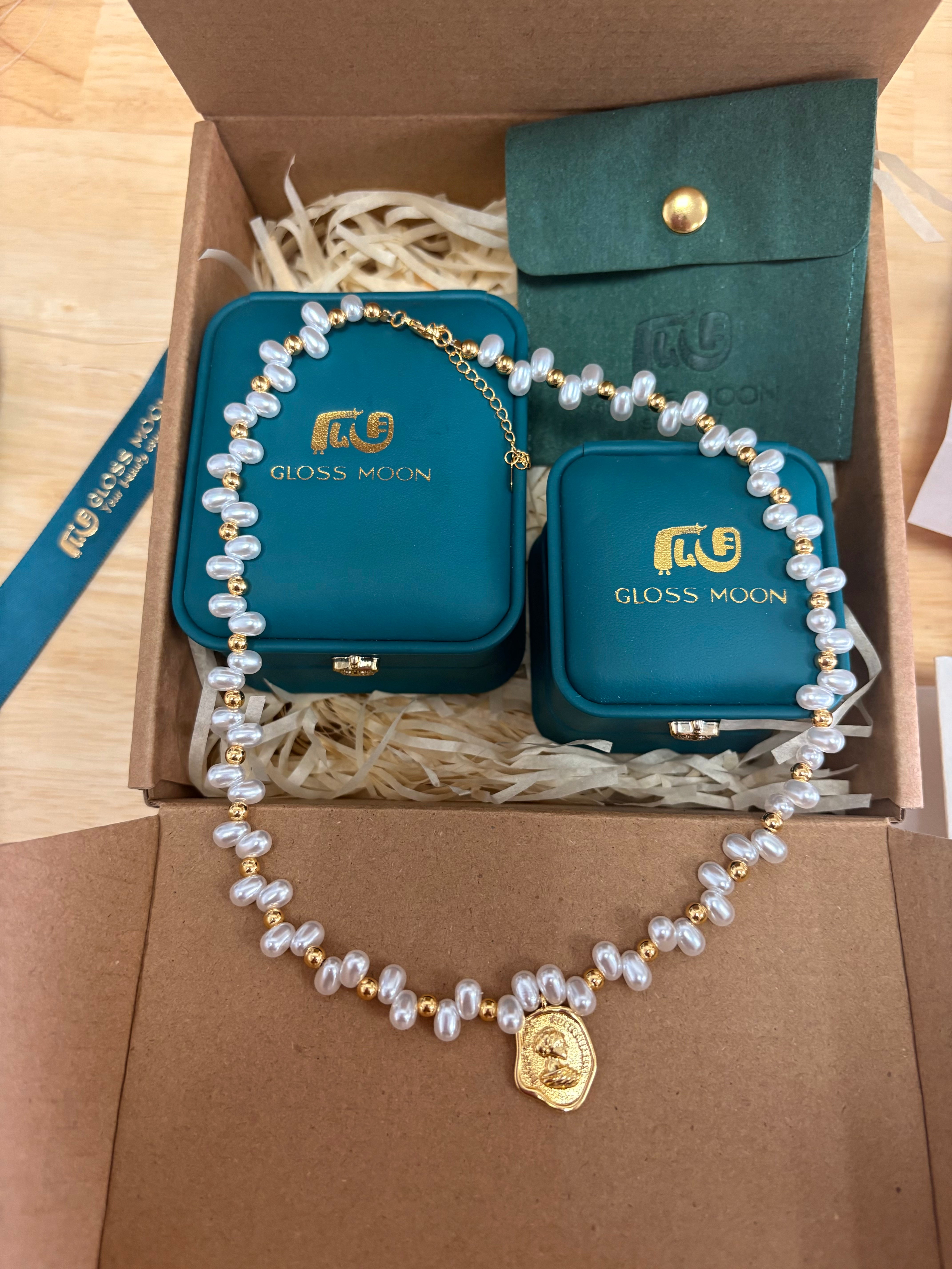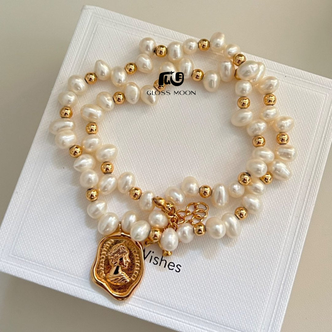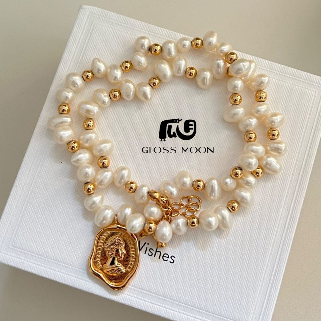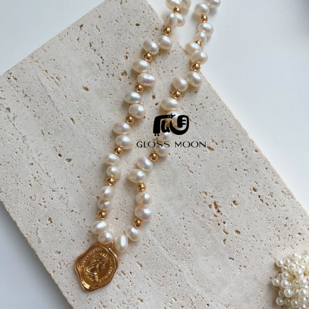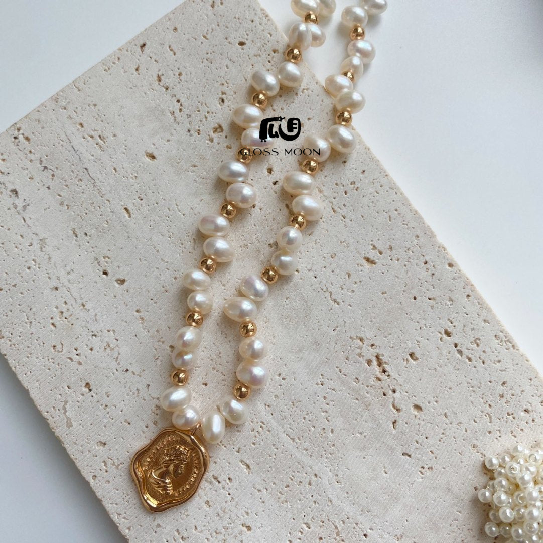 Gloss Moon Fresh Fashion Pearl Stone-Shaped Pearl Chain Queen Tag Necklace High-End Design Feminine Temperament